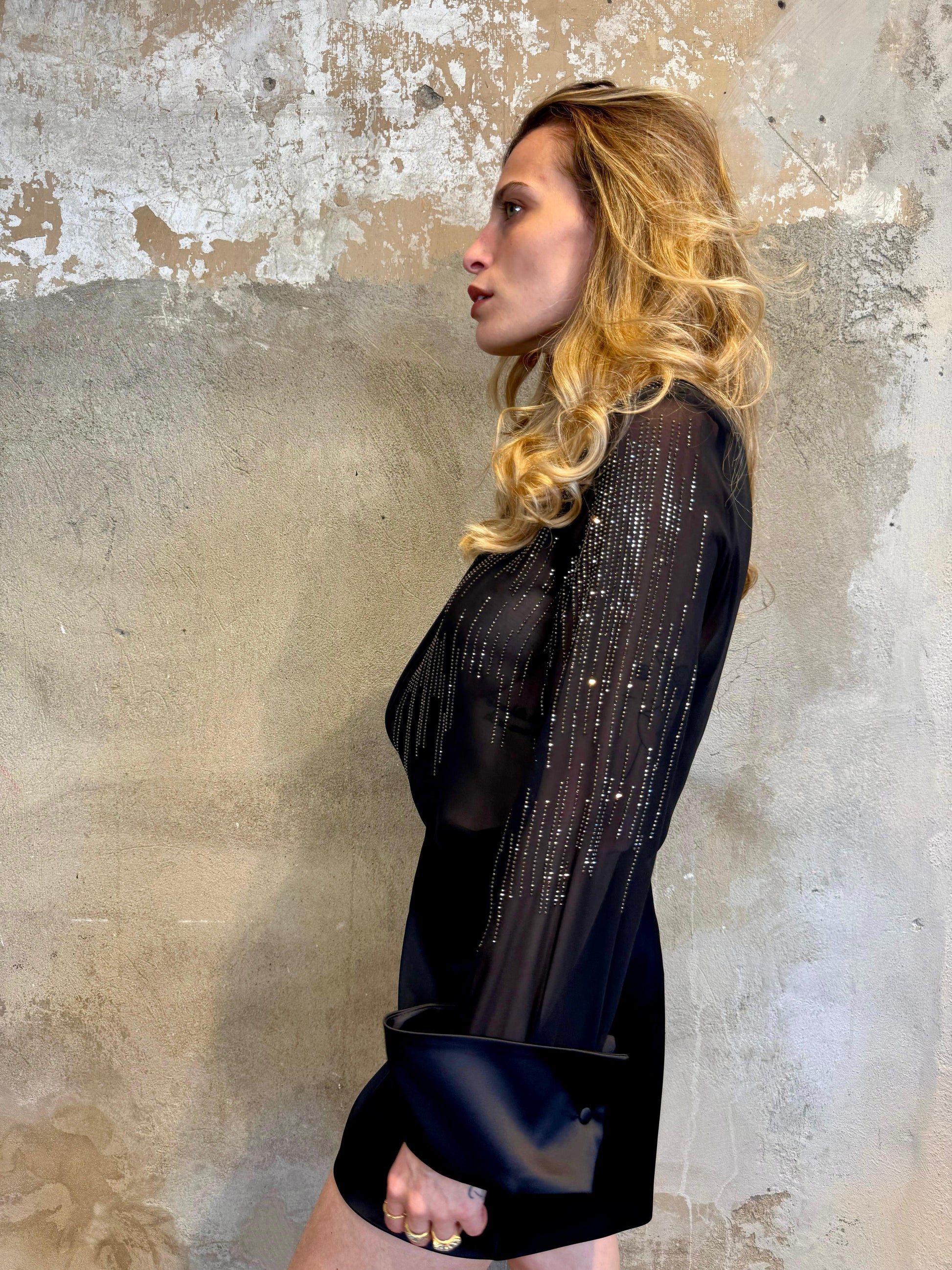 Camicia con cristalli applicati